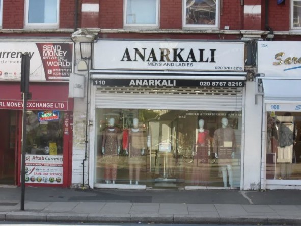 The word Anarkali at the front of the shop was written in Roman rather than in Urdu, making it legible to descendants of South Asians migrants who might have only spoken competence of Urdu, the lingua franca of multilingual Pakistan.