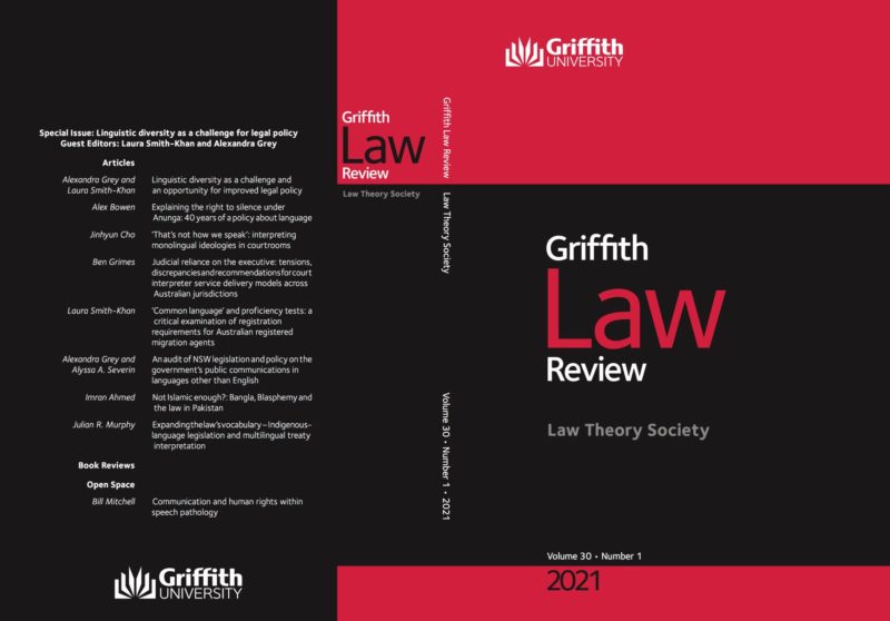 Griffith Law Review: Thematic Issue, ‘Linguistic diversity as a challenge to legal policy’ 2021, volume 30, issue 1.