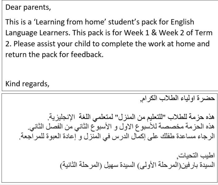 The pandemic has thrown a curve ball on teaching and learning practices and left little room for preparedness. One of the ways the school has chosen to disseminate information and instruction is to provide translations. But as mentioned in “Literacy in Heritage language maintenance”, there are those with a low literacy level in the heritage language and this could prove to be an impediment when they are new arrivals with little English skill but also unable to understand the translations of the communications if they themselves are also illiterate in their heritage language.