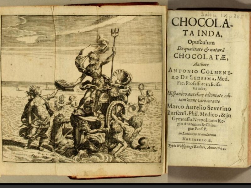 Europeans have long lied to themselves about chocolate: this 17th century treatise depicts an Indian princess handing over chocolate to the higher-placed Poseidon, the ancient Greek god of the seas (Image credit: Internet Archive)