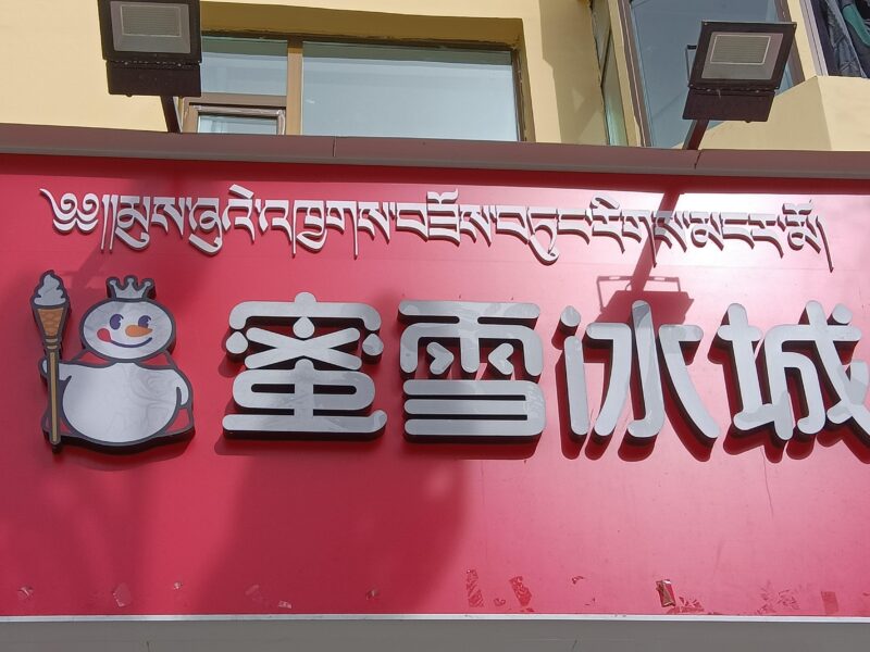 In some instances, Tibetan is merely a transliteration of Chinese brands, and lacks the attractiveness expected from commercial signage. This demonstrates how even languages with an established literary tradition, such as Tibetan, struggle to compete with nationally promoted languages and standardized models of economic and urban development.