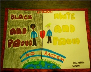 What an excellect poetic and visual response to the disease of Racism. It certainly is a triumph over adversity. I like your thinking and your voice in the poem and artists’ work that compliments the poem. Very creative! Well done boys! I would like to hear from you.