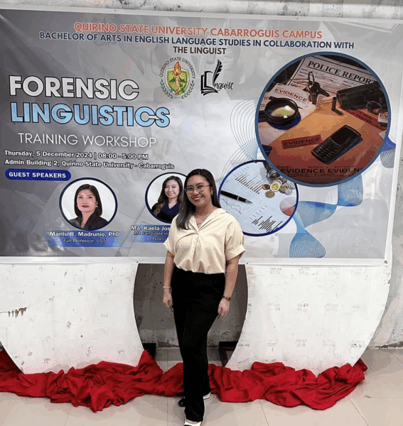 Kaela Madrunio, a guest speaker at the 2024 Forensic Linguistic Training Workshop at Quirino State University, The Philippines (Image credit: Kaela Madrunio)