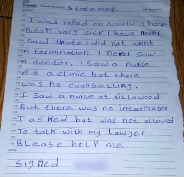 Abyan’s platform is very different. The public have access to one handwritten note, provided to the media by Australian lawyers. For Abyan and other refugees and asylum seekers in Nauru and Manus Island (PNG) due to Australian policy, this very policy greatly limits the access they have to the Australian media and vice versa. The Government of Nauru has implemented changes to its visa regime to almost universally restrict Australian media from travelling to Nauru in recent years. The Australian Government has also legislated to limit those professionals who do have the opportunity to interact with refugees from being able to speak out publicly about their treatment, with penalties of up to two years’ imprisonment for breaches.