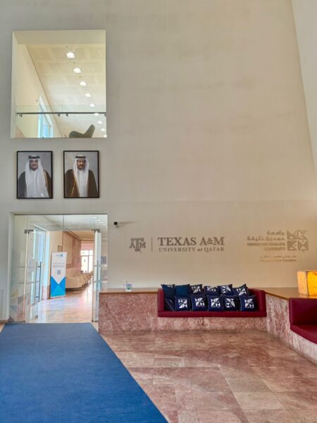 The changes are also visible in the presence of Qatar’s leadership. At the building’s entrance, portraits of the Emir, Sheikh Tamim bin Hamad Al Thani, and his father, Sheikh Hamad bin Khalifa Al Thani, now hang prominently. Such state imagery was absent during the TAMUQ era, when visual emphasis rested on Aggie traditions and the global prestige of Texas A&M. Their presence today highlights HBKU’s identity as QF’s homegrown university and its role in advancing national priorities. The walls themselves remind visitors that HBKU is a Qatari institution, rooted in the state’s vision for education and innovation.