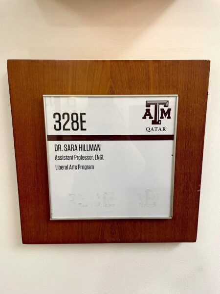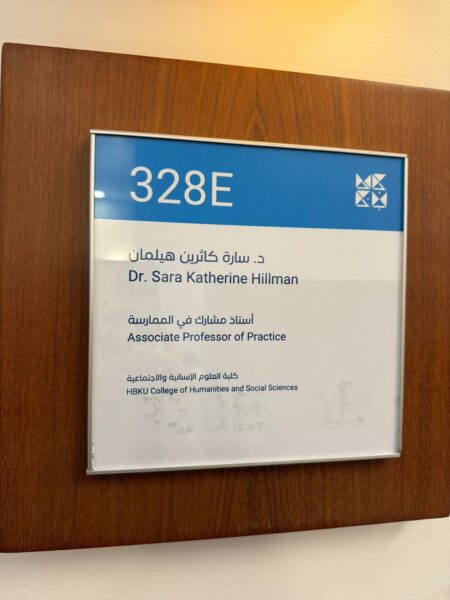 The difference is visible, for example, in faculty office nameplates. At TAMUQ, they appeared only in English, whereas at HBKU they are consistently bilingual, with Arabic displayed first. This small but significant shift reflects how language policy is made material in the everyday visual culture of the university.