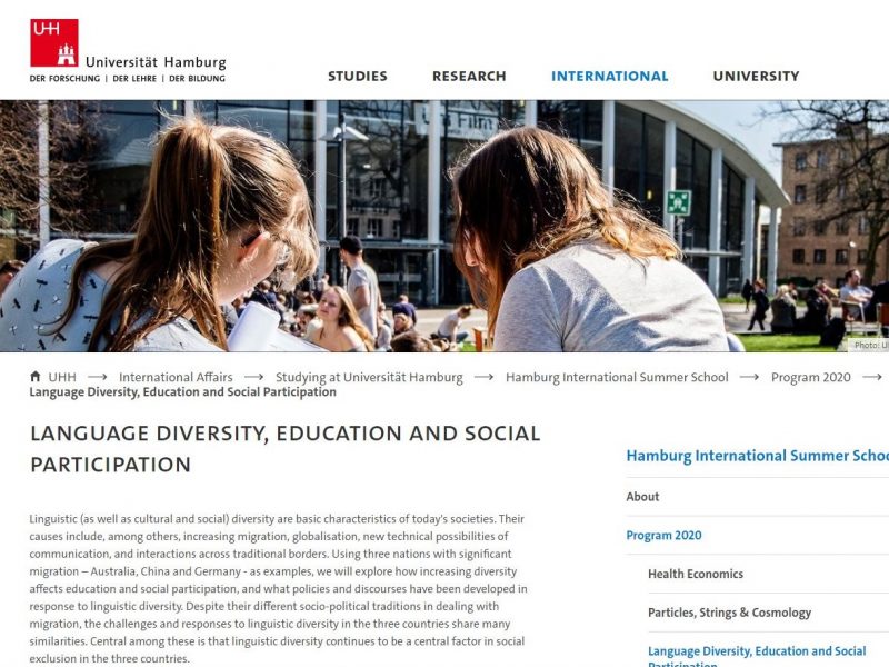 Hamburg University will run a summer school devoted to “Language Diversity, Education, and Social Participation” this July.