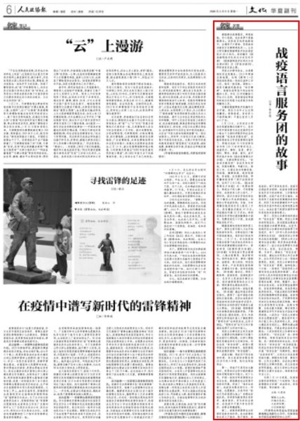 Professor Li Yuming’s original article “战疫语言服务团的故事” in CPPCC Newspaper, March 09, 2020