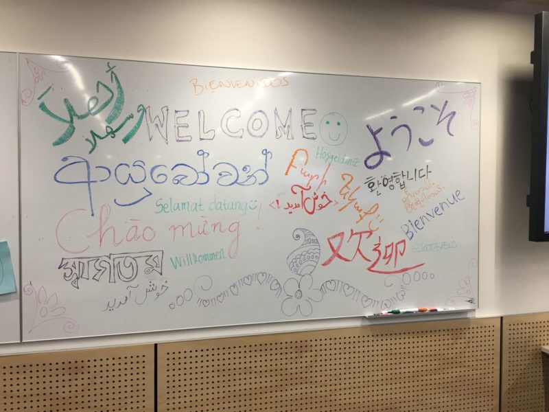 You are welcome to all the multilingual fun Language on the Move brings to you throughout the year. This multilingual sign was handcrafted by students in the Literacies unit.