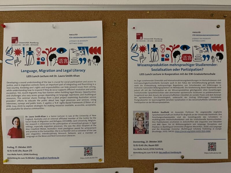 Throughout the year, we welcomed an amazing group of visitors to the University of Hamburg, as part of two lecture series: the Lunch Lectures of the Literacy in Diversity Settings (LiDS) Research Center and as part of the public lecture series “Everyday Multilingualism.”