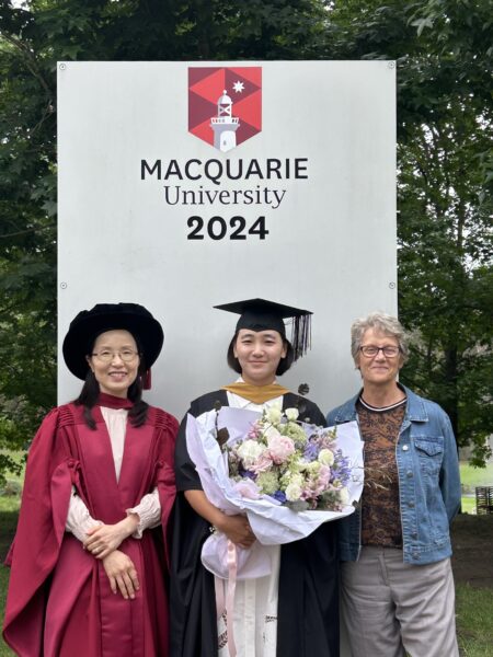 Sunjoo Kim (middle) graduating from her Master of Research
