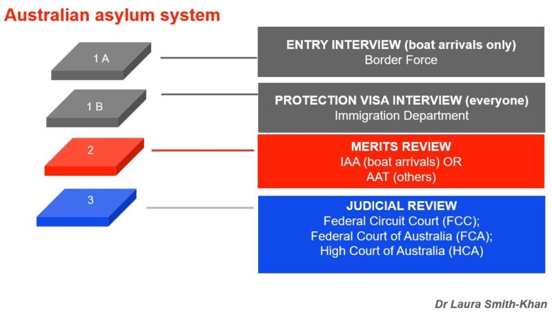 First, for people arriving by boat, they have a basic entry interview. And then if the government allows them to, they will later make a protection visa application, along with other asylum seekers who were able to reach Australia by plane, with some other visa, for example as tourists or students.