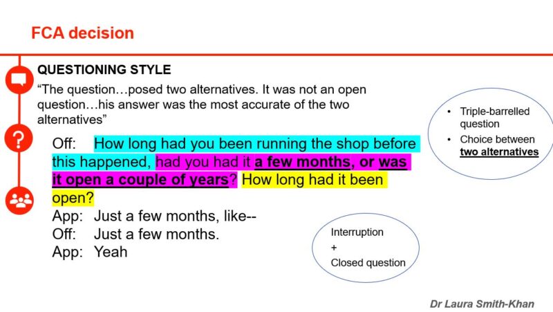 By looking more closely at the interaction, instead of just those decontextualized fragments, the judge concluded that the original finding of an inconsistency was not logical, and that the answer “a few” could be explained by the way the questions were worded, and because of the official’s interruptions too. He observed that “the question … posed two alternatives. It was not an open question” and the asylum seeker’s “answer was the most accurate of the two alternatives.”