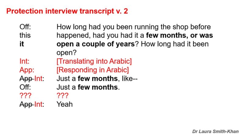 Particularly relevant to our current discussion is this extract of the transcript (see Image). The transcript is reproduced in the court decision (references are to the Immigration Officer (Off) and the asylum seeker (App)).