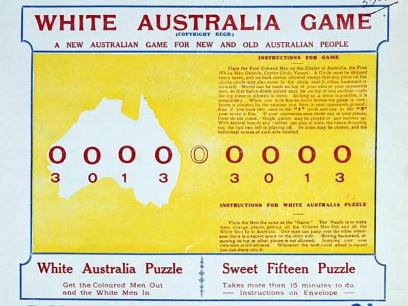 Australia as a White nation has deep roots: the aim of this 1914 board game was literally “to get the Coloured Men out and the White men in” (Image credit: National Archives of Australia)