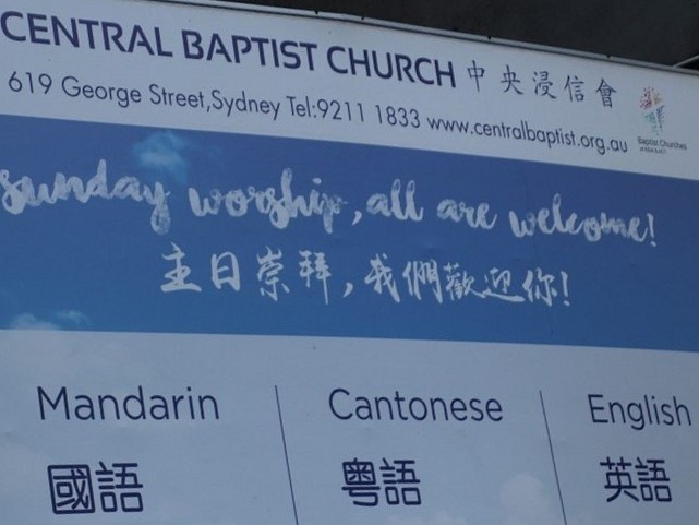 Chinese signage on churches is increasingly prominent in Sydney’s linguistic landscape. These signs are surprising because they are bilingual in a predominantly English monolingual linguistic landscape. They are also surprising because Chinese is not the language of a traditional Christian population. Chinese-English bilingual church signage is evidence of a growing trend towards conversion to Christianity among Australia’s Chinese population.